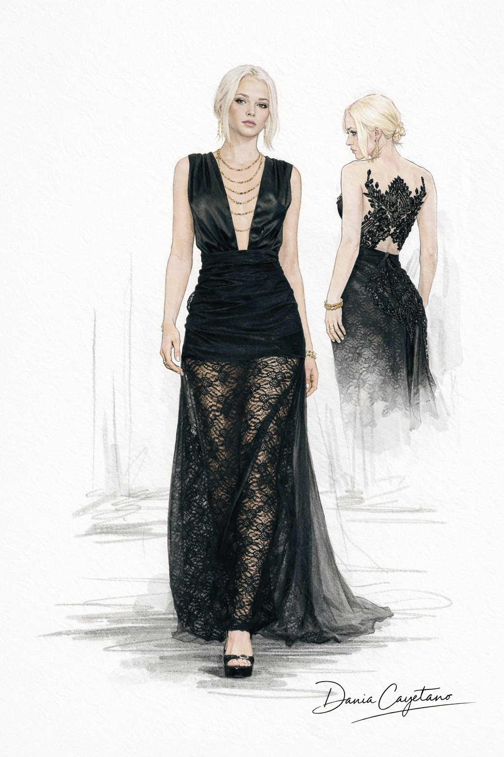 Hecate, from the Goddesses Collection, is recreated as a custom couture black gown that embodies mystery, elegance, and feminine strength. Designed to captivate from every angle, the piece balances sensuality and sophistication through refined couture craftsmanship.